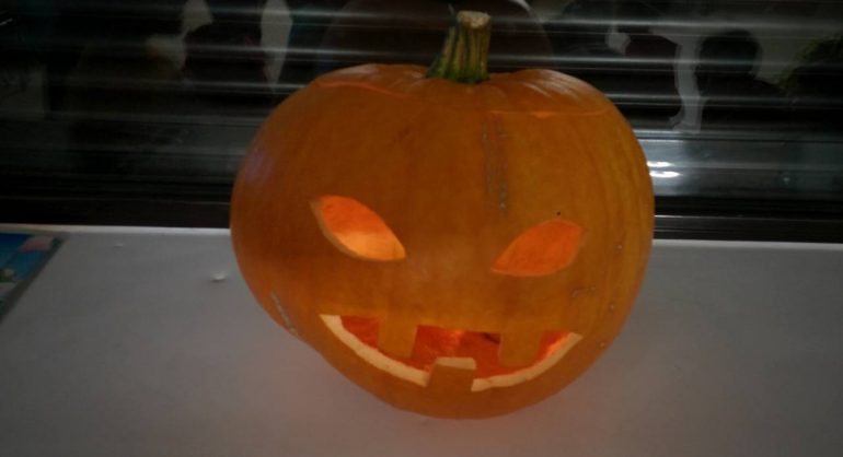 EIREK KUIA EDER HAU EKARRI DIGU GELARA. BARATZETIK HARTU, BARRUTIK HUSTU ETA BEGIAK ETA AHOA EGIN DIZKIO…KANDELA PARE BAT BARRUAN IPINI ETA HORTXE KALABAZA BELDURGARRIA! ESKERRIK ASKO EIRE ETA AMAIA! ...