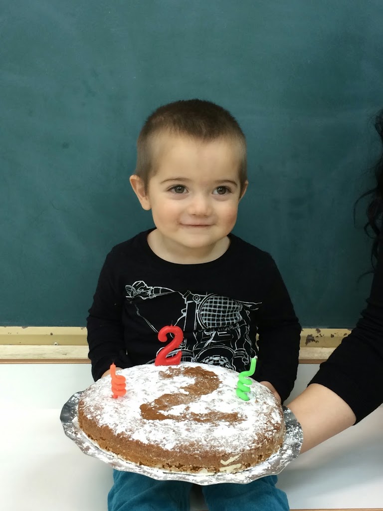 Janitzen urtebetzea iritxi da. Oso pozik etorri da eskolara “attekin” egindako bizkotxoarekin. Goxo goxoa zegoen eta Janitz BI URTE dituzu!