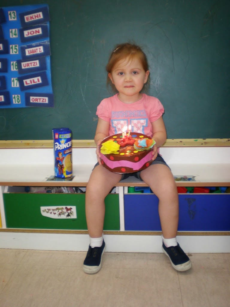 Laister dira Udako OPORRAK!!! eta gure gelako Amaiak oporretan 3 urte betetzen dituenez, gaur ospatu dugu bere aurre-urtebetetzea. Abestu, kandelak itzali eta txokolatezko gaileta erraldoiak janez ospatu dugu.AUPA AMAIA!!!, ZORIONAK!!!