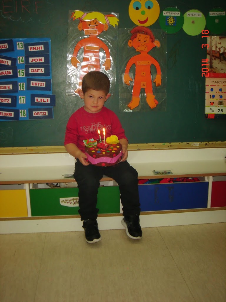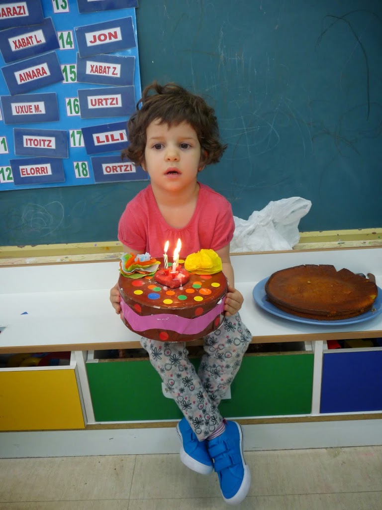 Gaur ere egun polita izan dugu. Xabat Labakaren urtebetetzea ospatu dugu, 3 urte haundi bete ditu. “Zorionak zuri” abestu, kandelak itzali eta ondoren, bere amatxok egindako bizkotxo goxo-goxoa jan dugu. ...