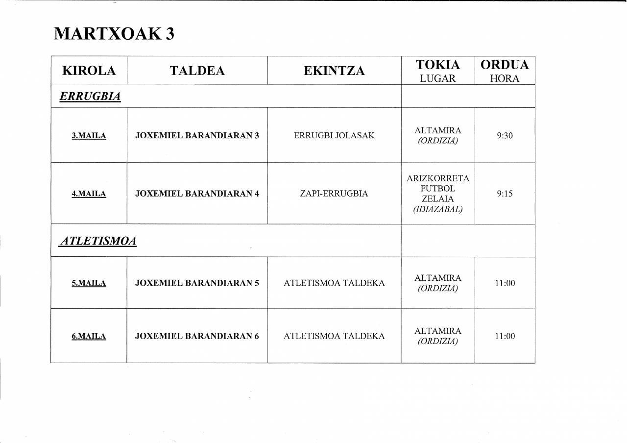 ESKOLA KIROLA: ERRUGBIA – ATLETISMOA