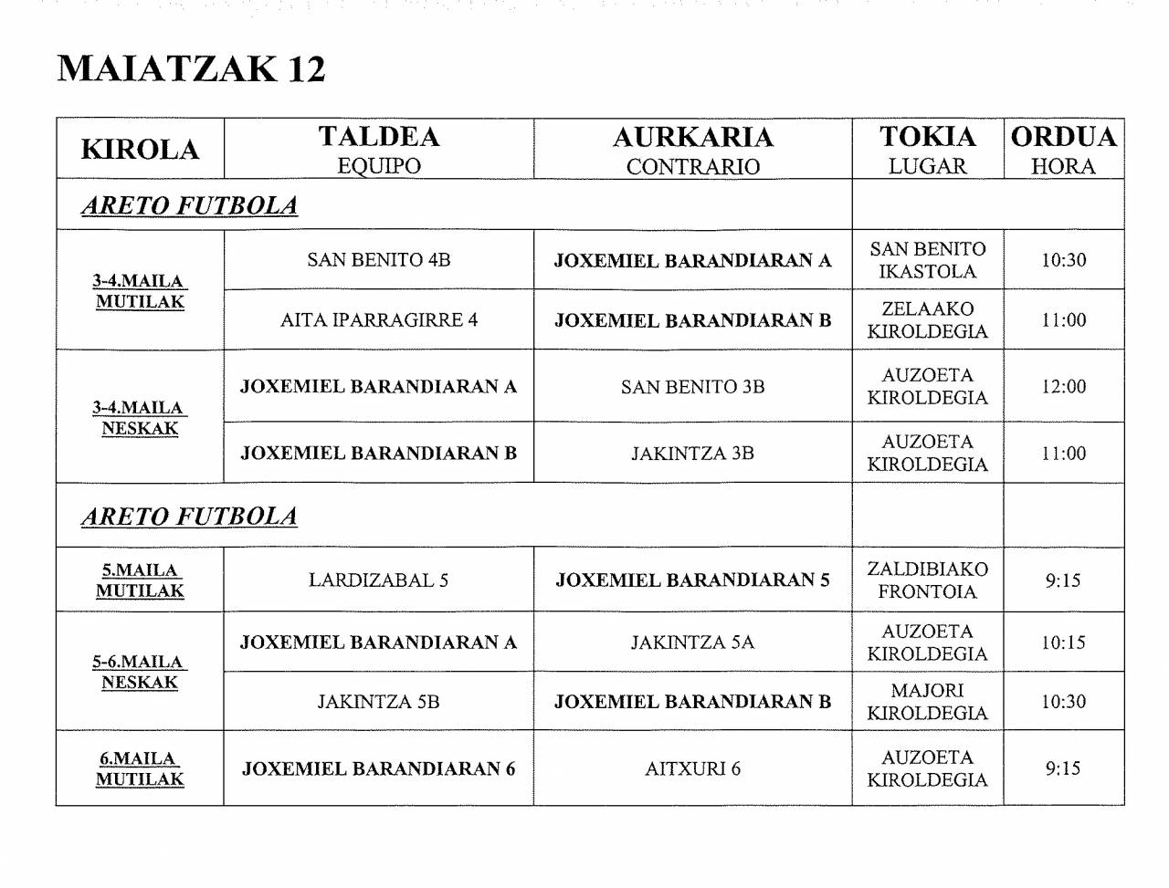 ESKOLA KIROLA: ARETO FUTBOLA