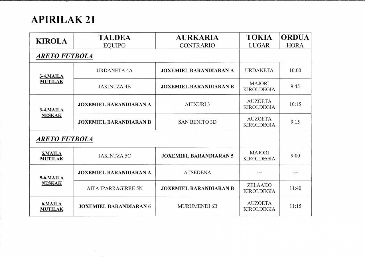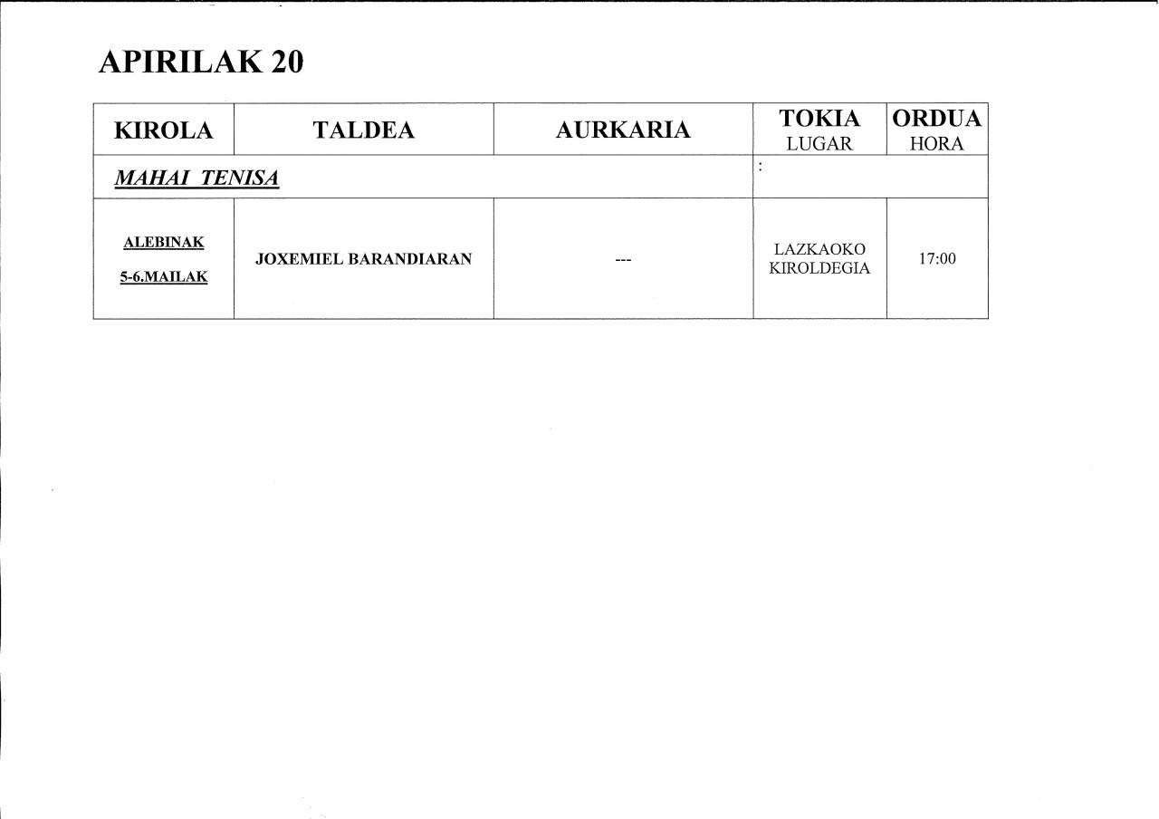 ESKOLA KIROLA: ARETO FUTBOLA – MAHAI TENISA