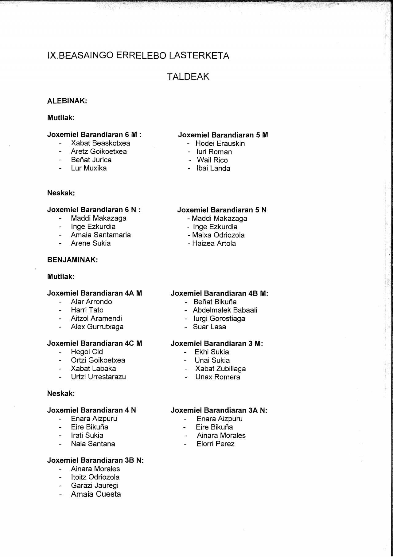 ESKOLA KIROLA: IX.BEASAINGO ERRELEBO LASTERKETA