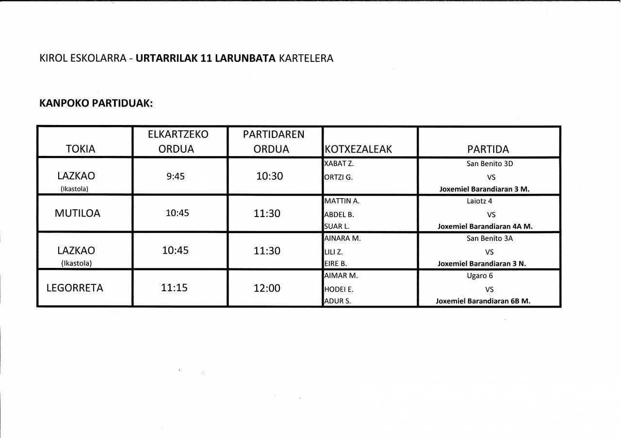 ESKOLA KIROLA: KANPOKO ETA ETXEKO PARTIDUAK