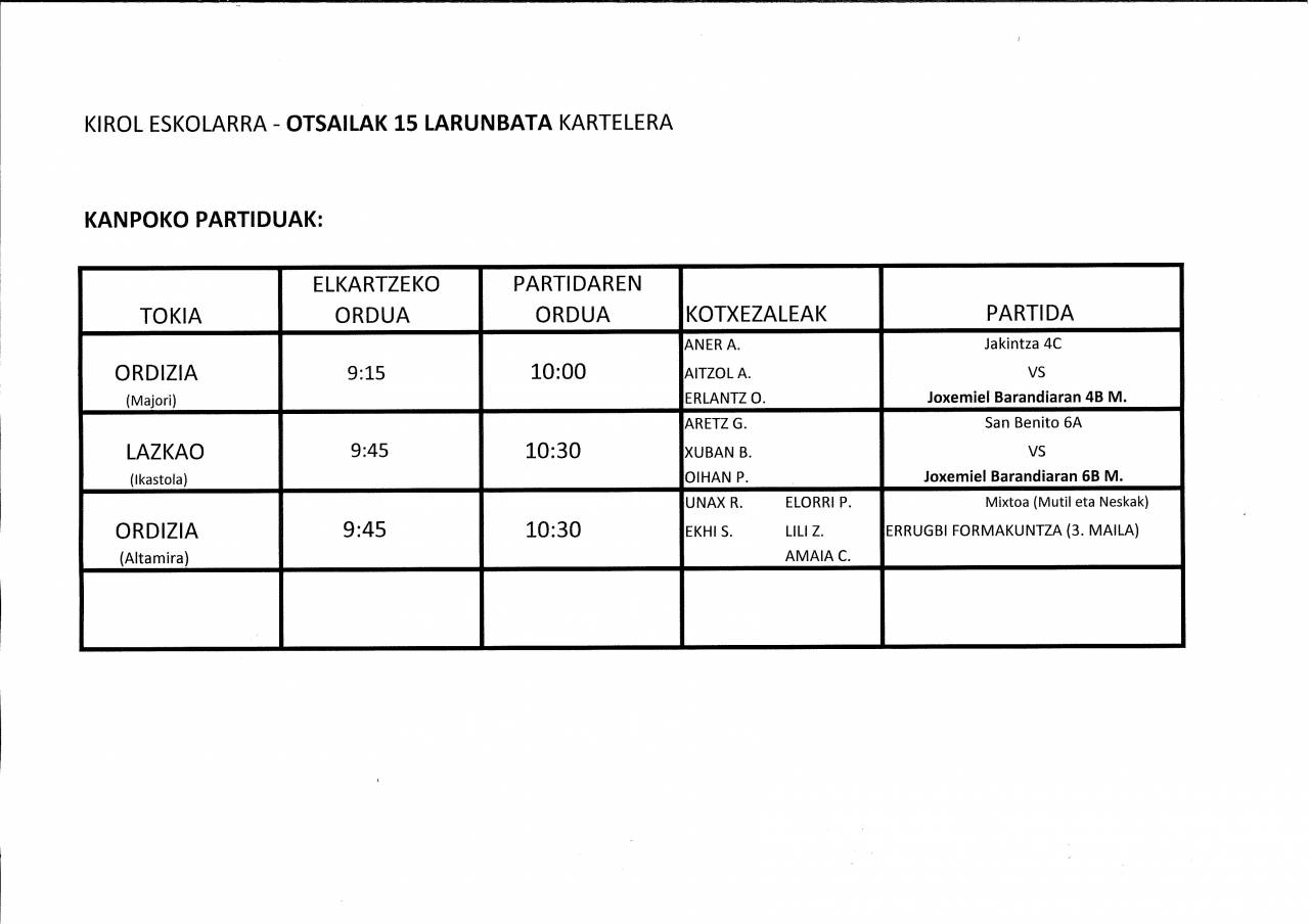 ESKOLA KIROLA: KANPOKO / ETXEKO PARTIDUAK