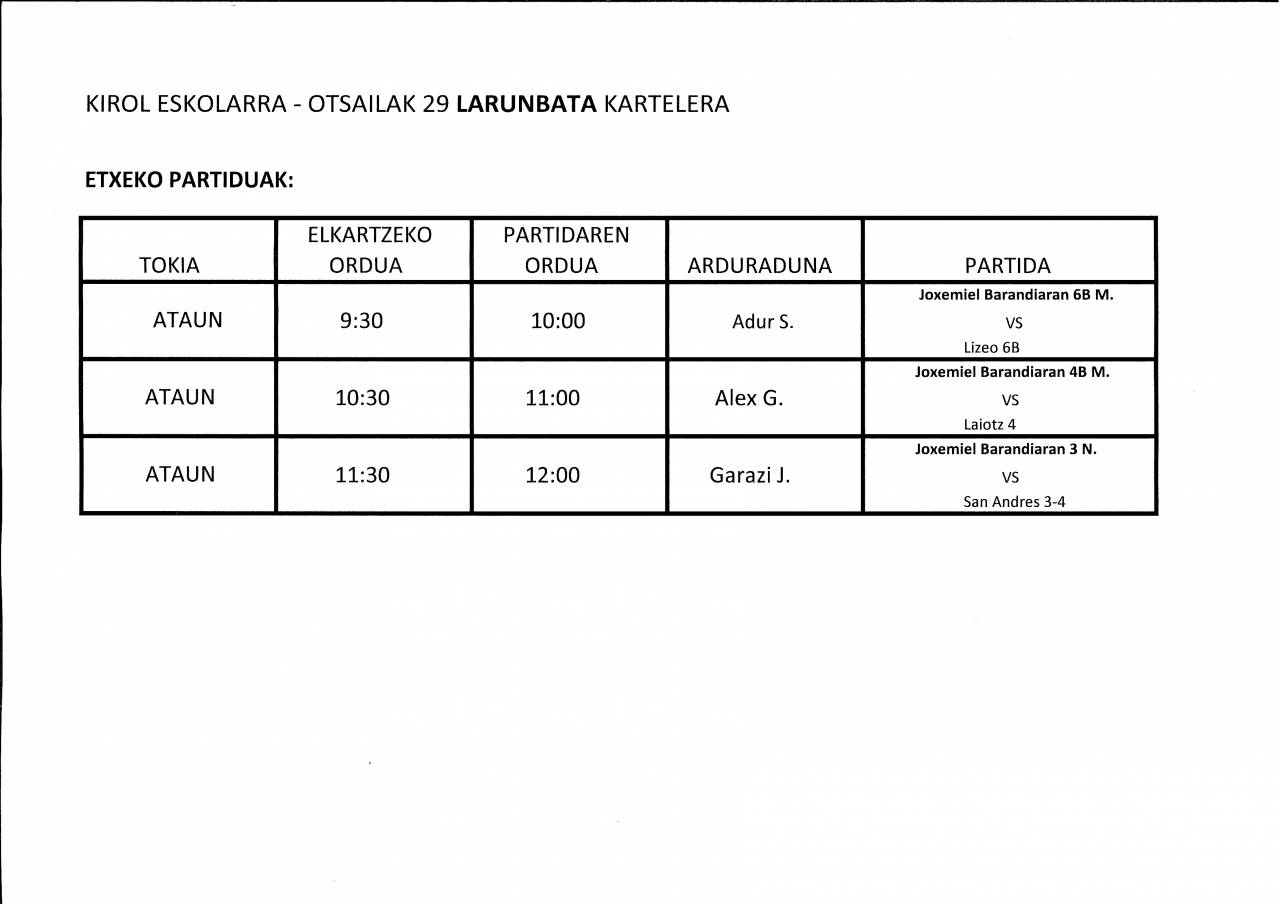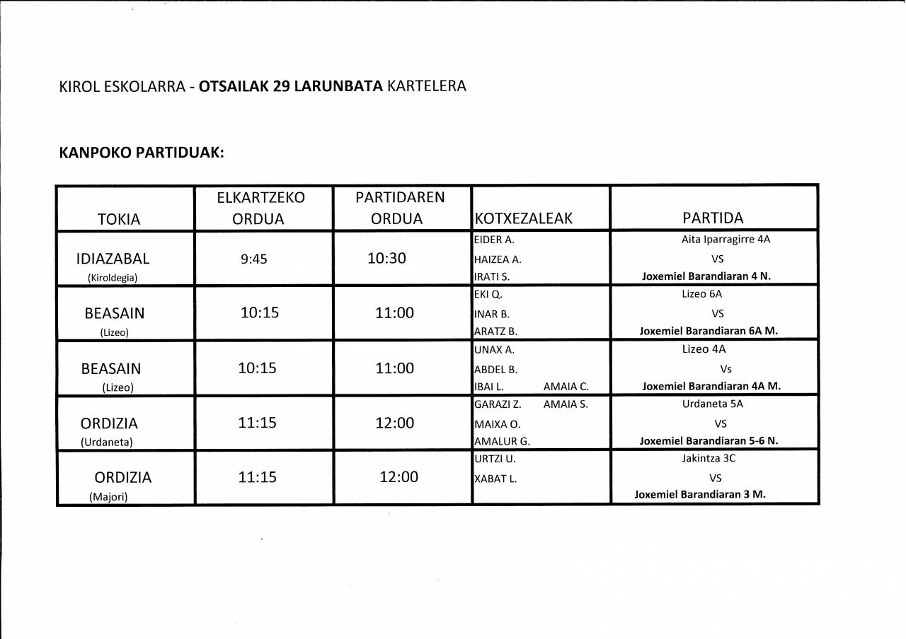 ESKOLA KIROLA: KANPOKO / ETXEKO PARTIDUAK