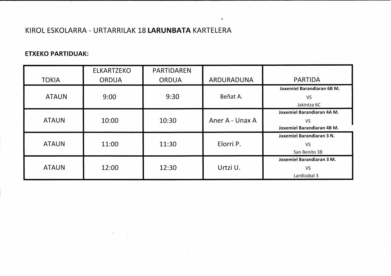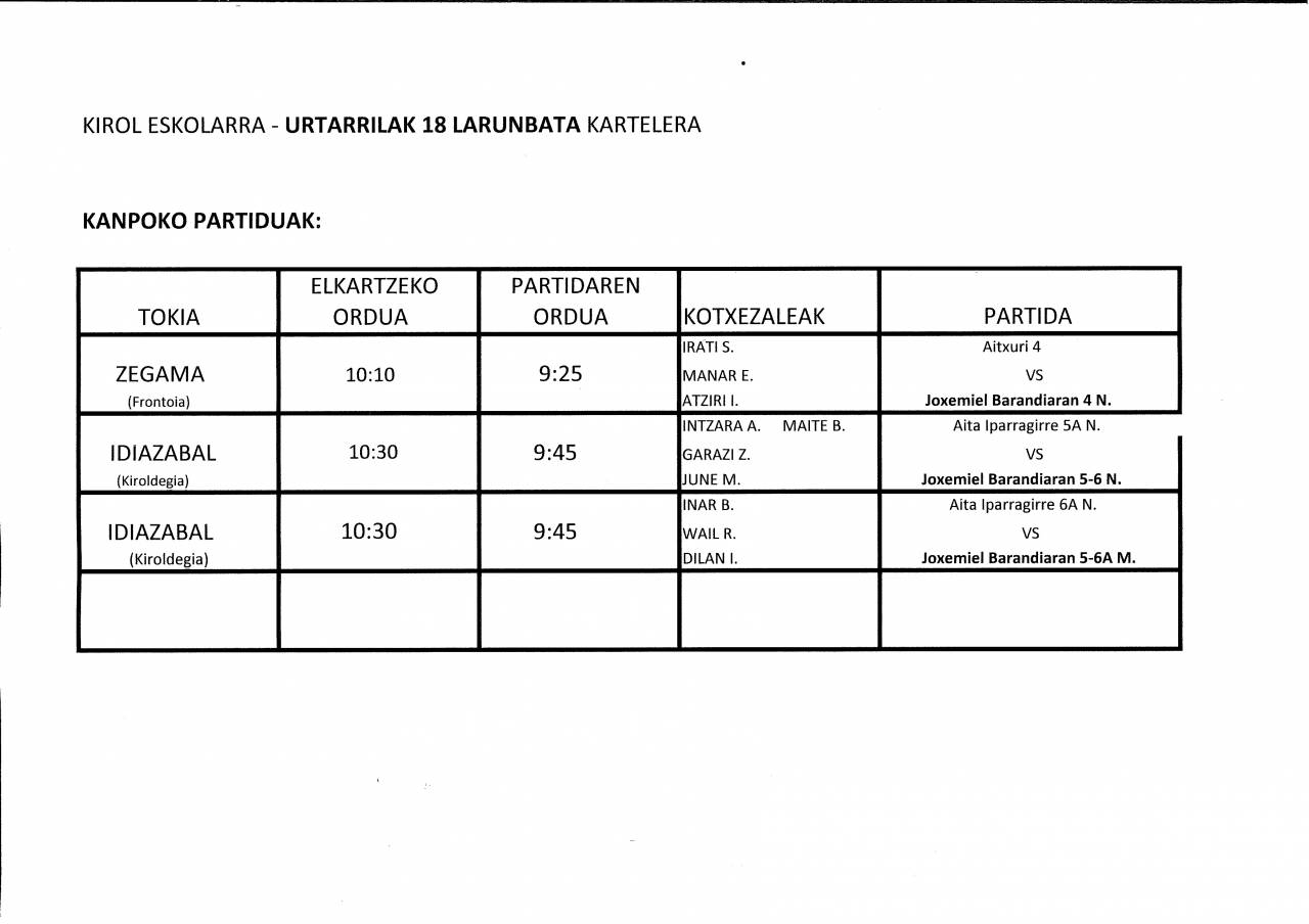 ESKOLA KIROLA: KANPOKO / ETXEKO PARTIDUAK
