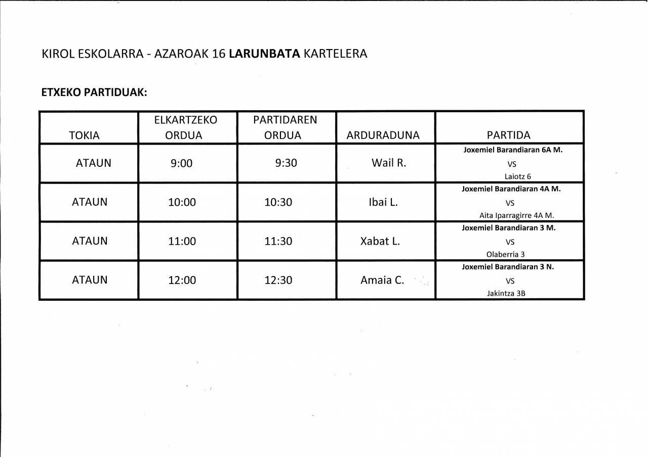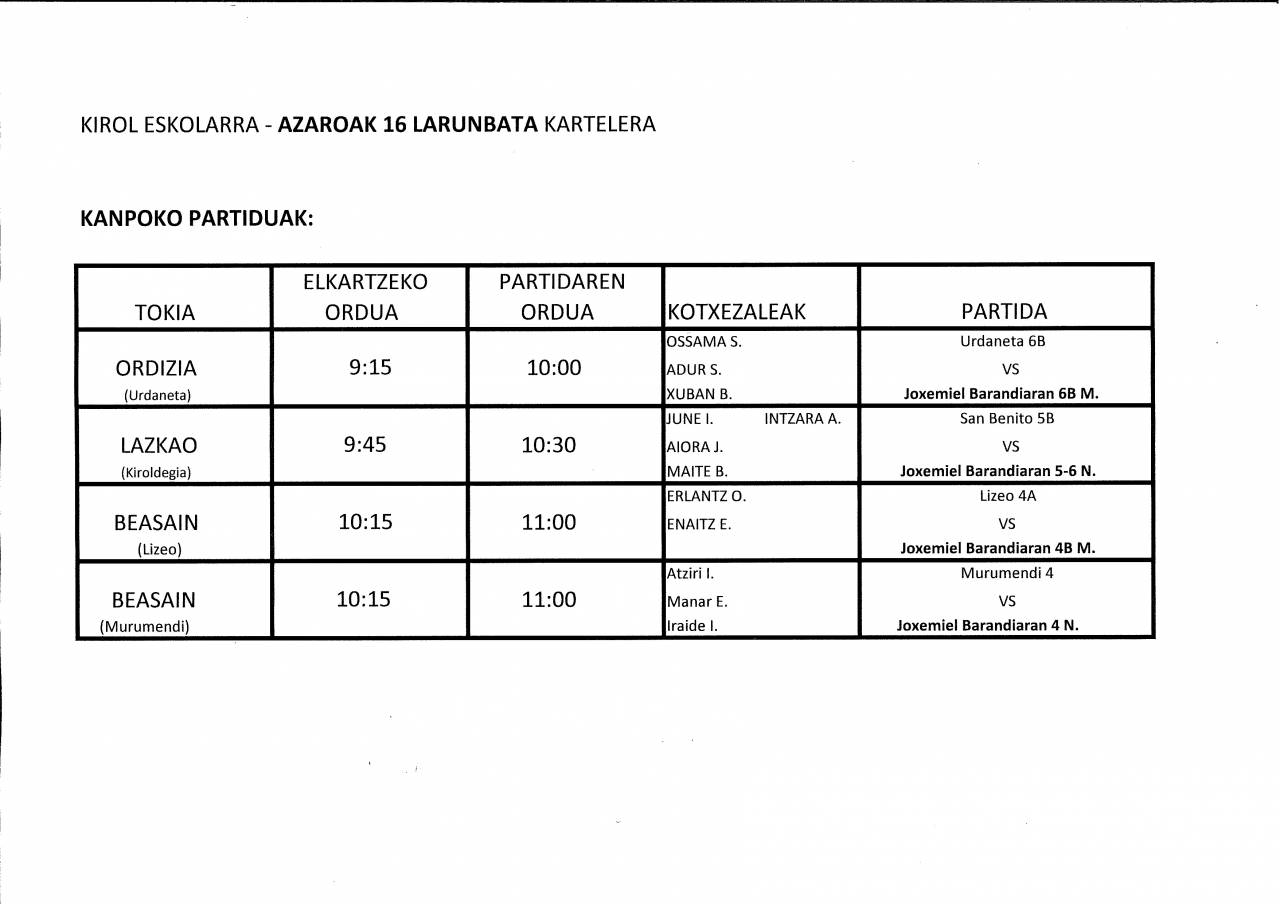 ESKOLA KIROLA: KANPOKOAK / ETXEKOAK