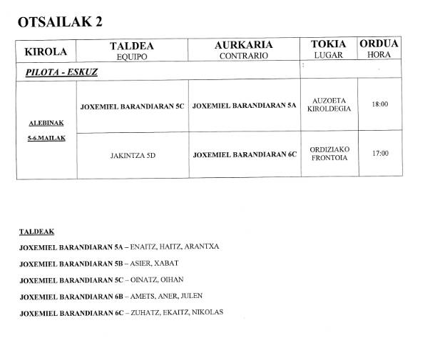 ESKOLA KIROLA: PILOTA – ESKUBALOIA