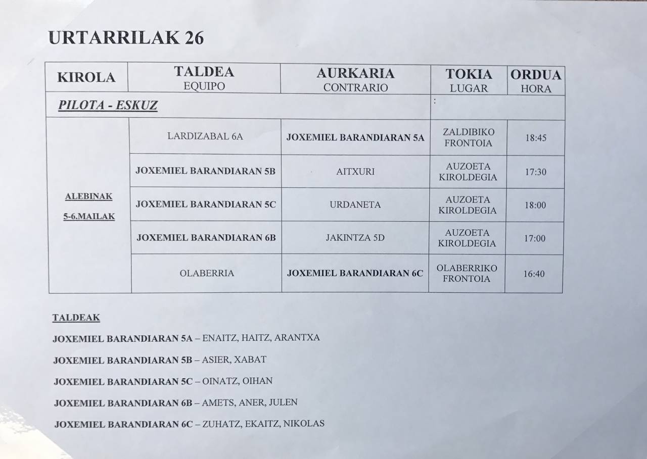 ESKOLA KIROLA: PILOTA – ESKUBALOIA