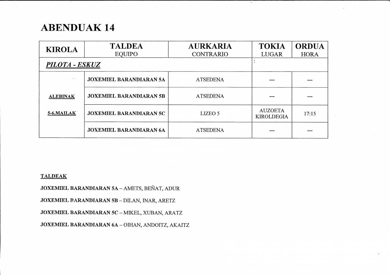 ESKOLA KIROLA: PILOTA – UR JOKOAK – PILOTA ALTUERA