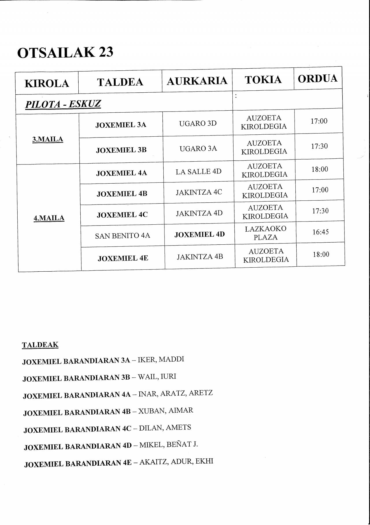ESKOLA KIROLA: PILOTA – MENDI IBILALDIA