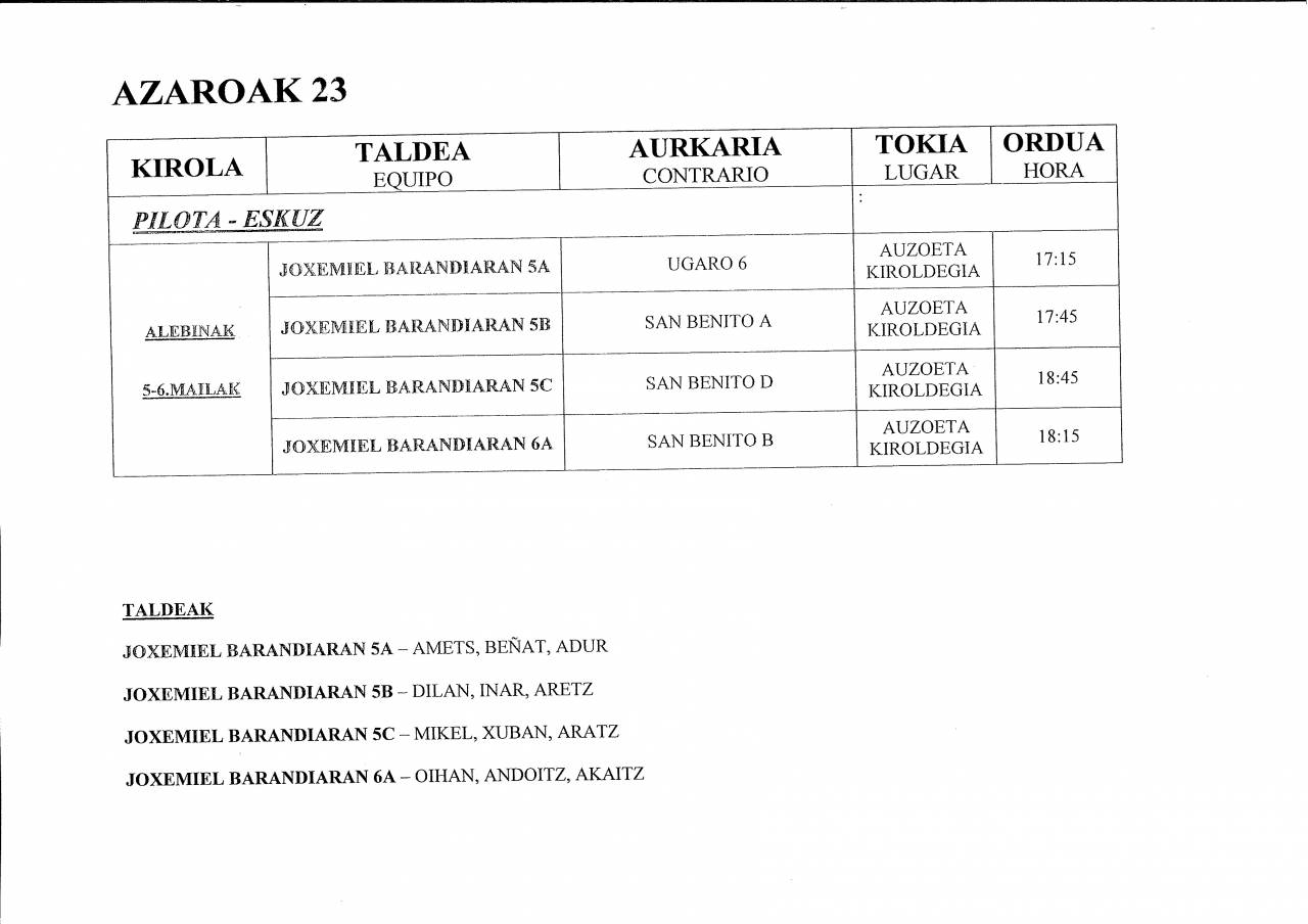 ESKOLA KIROLA: SASKIBALOIA – ESKU PILOTA
