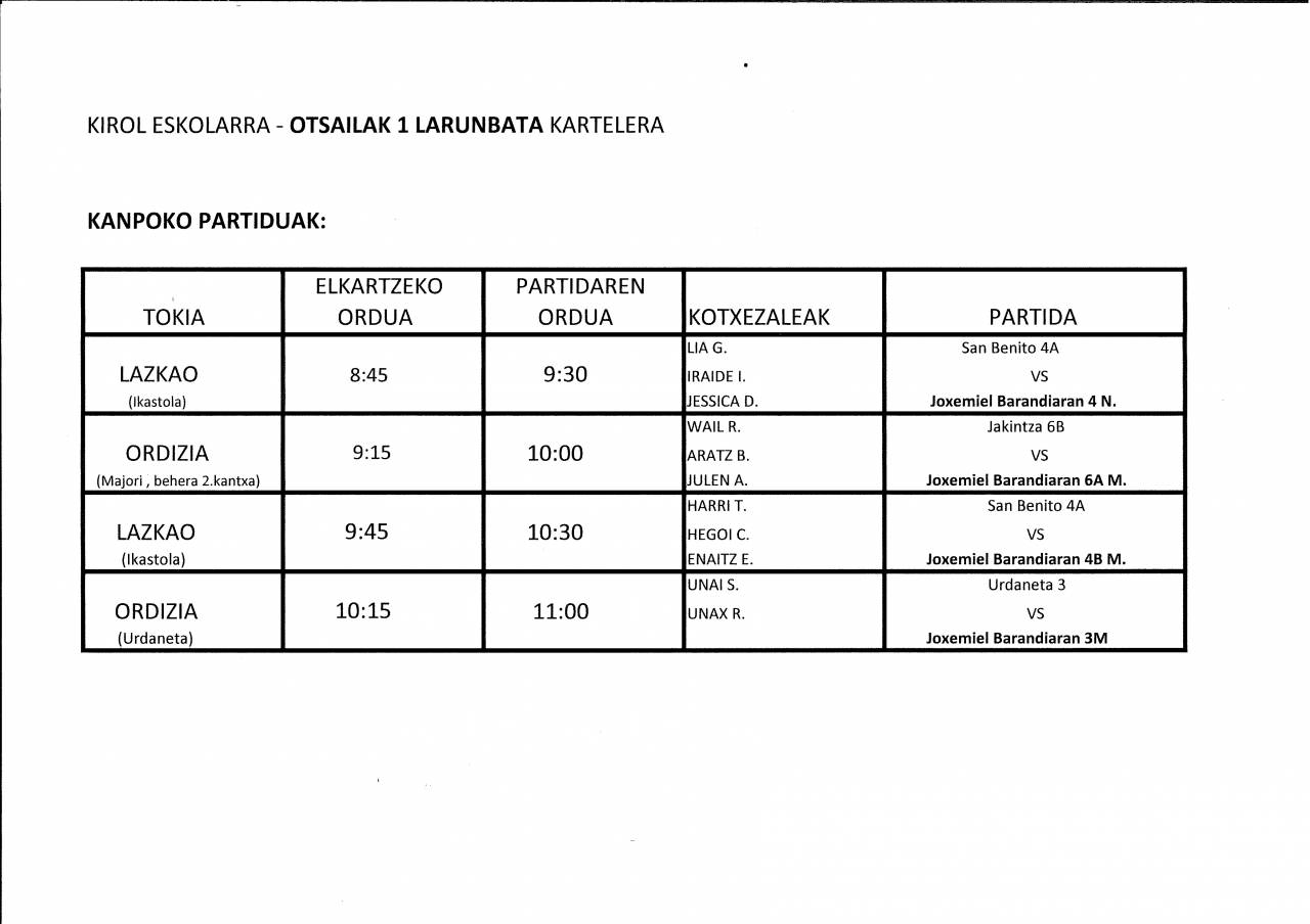 ESKOLA KIROLA : KANPOKO / ETXEKO PARTIDUAK