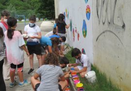 Eskola ingurua atondu nahaiean ikasleek mural eder bat margotu dute natura gaia ardatz dutela.