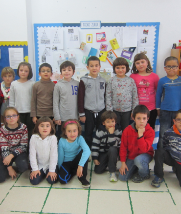 Janitzen urtebetzea iritxi da. Oso pozik etorri da eskolara “attekin” egindako bizkotxoarekin. Goxo goxoa zegoen eta Janitz BI URTE dituzu!