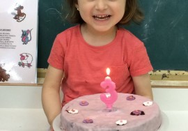 AMAIURen urtebetetzea maiatzak 6ean iritxi da, eta Amaiurek eskatu bezala tarta arroxa bat ekarri du, oso pozik zegoen berak itsatsi zizkiolako lorak. Zorionak AMAIUR!!!!!!!!!