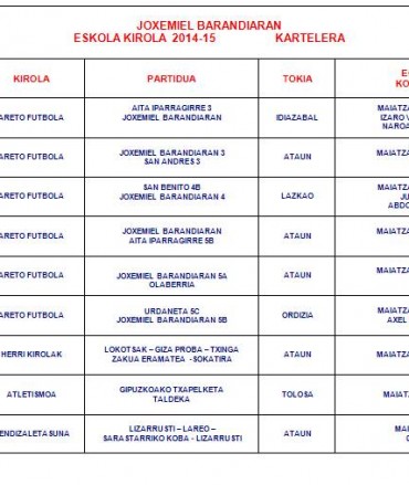 maiatza 07, 2015-Hirukoitza: 2. Aimar Aierbe eta 3. Markel Galparsoro -Pilota jaurtiketa: txapelduna Maddi Urrestarazu. Parte hartu dute gure eskolako kirolariak: Unax Anza, Aimar Aierbe, Aratz Lasa, Markel Galparsoro eta Maddi...