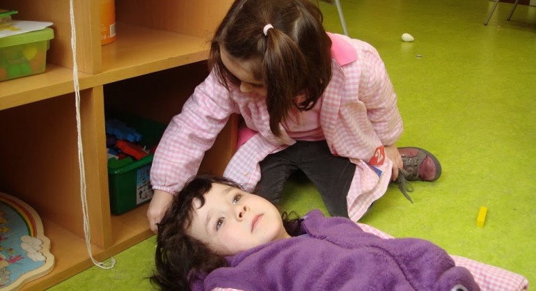 -Lehenengo lagun bat lurrean etzan eta klarionarekin lurrean bi marratxo egin ditugu lagunaren luzera zehazteko.