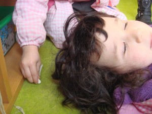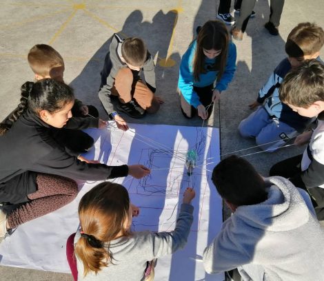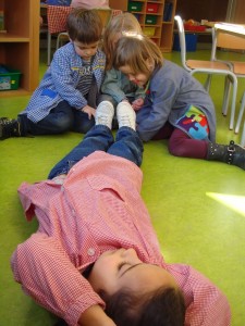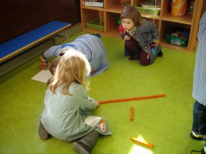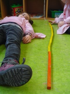 -Lehenengo lagun bat lurrean etzan eta klarionarekin lurrean bi marratxo egin ditugu lagunaren luzera zehazteko.