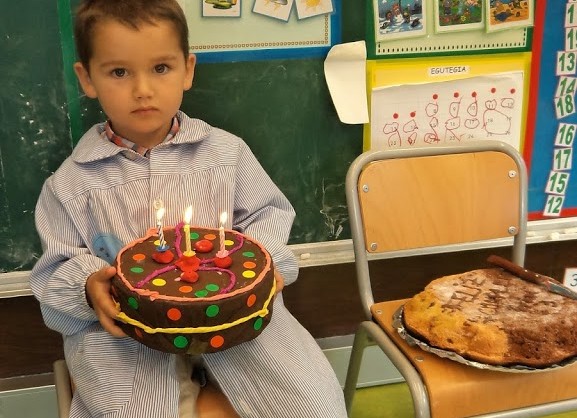Gaur egun polita izan dugu: Ryanen urtebetetzea. Poz-pozik eta guapo-guapo etorri zaigu goizean. Abestu, belarritik tira egin eta txokolatezko pastel goxo-goxoa janez ospatu dugu. AUPA RYAN!!, zu ere 3 urtekoen klubean sartu zara eta…