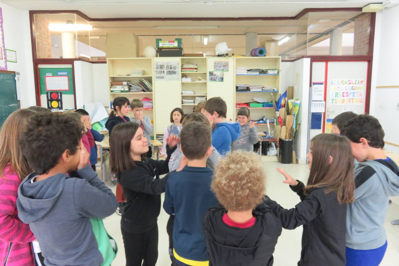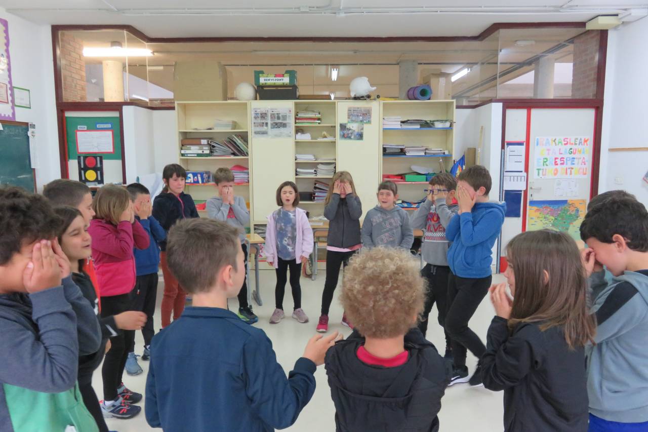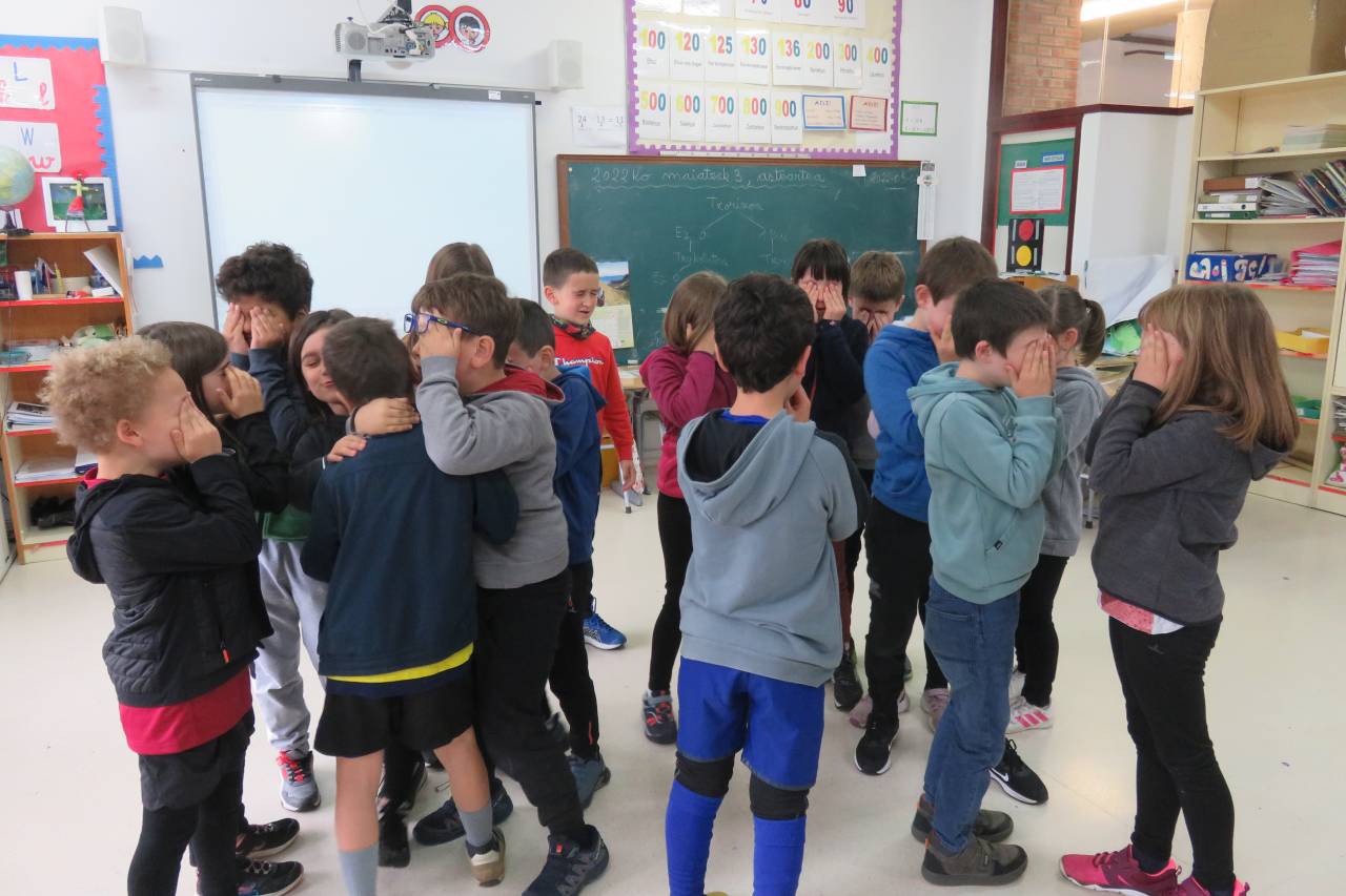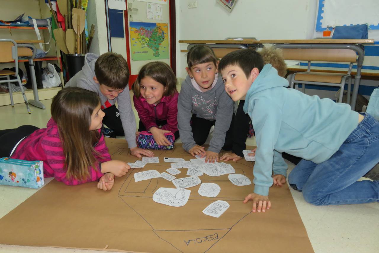 “Ispiluari begira tailerra egin dute LH2ko ikasleek, UEMA Udalerri Euskaldunen Mankomunitatearen laguntzarekin. Tailer honen helburua da haurrek eta haien inguruko pertsonek egunerokoan erabiltzen dituzten hizkuntzak identifikatzea. Horretarako, hiru mural osatu dituzte: etxea, eskola eta parkea. Hiru gune horietan erabiltzen eta entzuten dituzten hizkuntzak kontuan izanda, kolore batean edo bestean margotu dituzte irudiak. Horrela, ondorioztatu dute eskola dela beren egunerokoko gune euskaldunena. Parkean ere ia erabat egiten dute euskaraz; eta etxeko erabilera, altua den arren, baxuagoa da. Behin eskulanak eginda, ikasleek muralak eta haietatik ateratako ondorioak azaldu dituzte. Bideo bat prestatzen ari gara, LH2ko ikasleen guraso guztiek lanketaren berri izan dezaten.