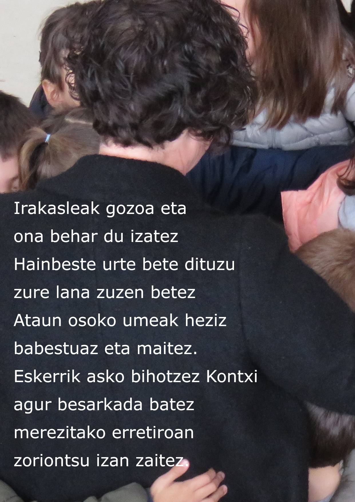 Dantza, kantu, bertso eta batez ere, emozio handiekin, agurtu dugu urte askotan gure eskolan lanean aritu den irakaslea: Kontxi Urteaga. Zure bizitzan hasiko duzun etapa berri honetan zorterik onena opa dizugu. Eskerrik asko egindako guztiagatik!